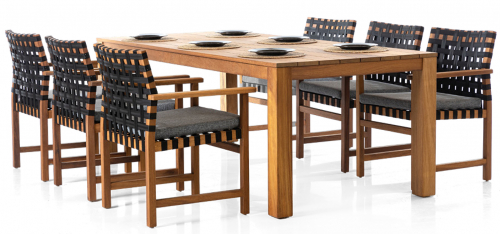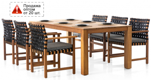 Стильная и красивая коллекция обеденной мебели Langkawi украсит любое открытое пространство. Комплект подойдет для размещения 6-ти человек и состоит из большого обеденного стола и шести кресел с подушками.
