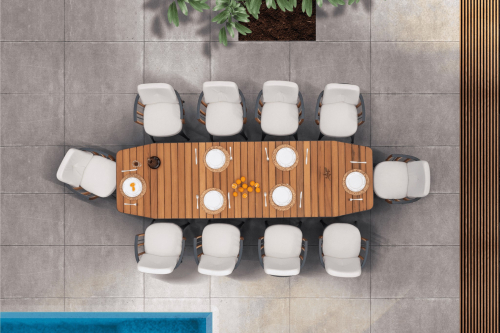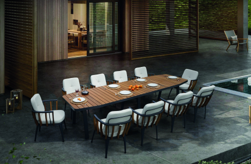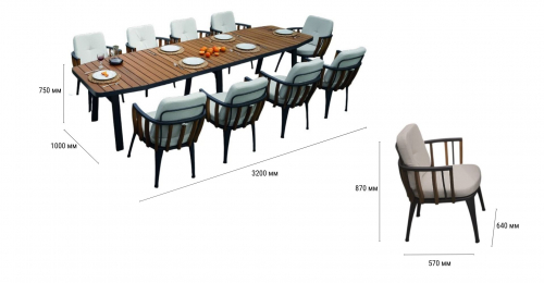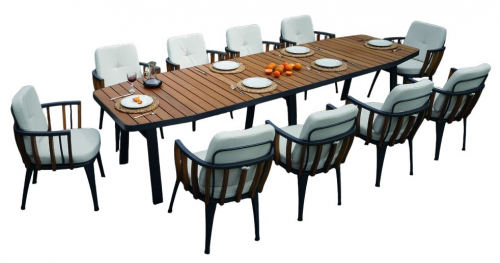 Этот комплект создан для тех, кто ценит качество, комфорт и современный дизайн. Легкий, но прочный алюминиевый каркас обеспечивает долговечность, а изысканные элементы из массива ироко придают мебели теплоту и благородство. Эта ценная порода дерева отличается высокой прочностью, устойчивостью к влаге и поражению насекомыми, что делает её идеальной для использования на открытом воздухе.