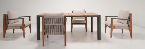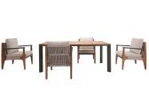 Этот комплект создан для тех, кто ценит качество, комфорт и современный дизайн. Элегантный и минималистичный дизайн комплекта гармонично впишется в любой ландшафтный стиль. Сочетание металла, дерева и плетения роупом создают атмосферу изысканности и уюта.