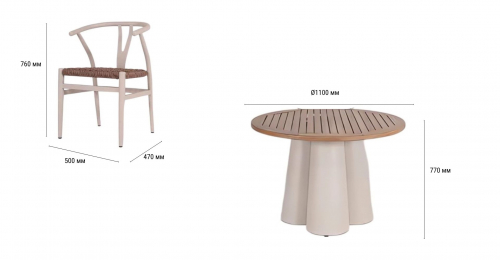 Этот комплект создан для тех, кто ценит качество, комфорт и современный дизайн. Элегантный и минималистичный дизайн комплекта гармонично впишется в любой ландшафтный стиль. Сочетание металла, дерева и ротанга создают атмосферу изысканности и уюта.