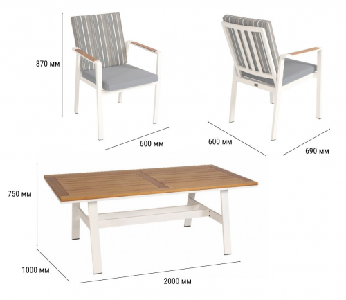 Комплект мебели Alfa – идеальное решение для создания комфортной и стильной атмосферы в любом пространстве! Будь то уютная домашняя обстановка, живописный сад или оживленный ресторан, этот комплект на 6 персон станет настоящим украшением и центром притяжения.