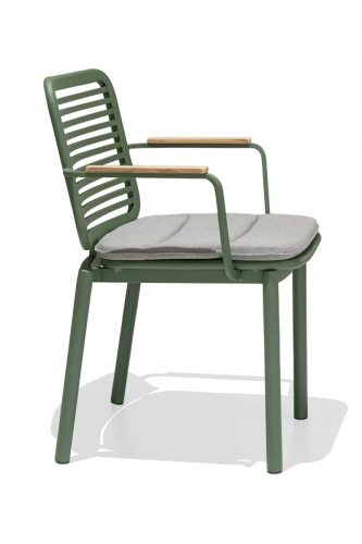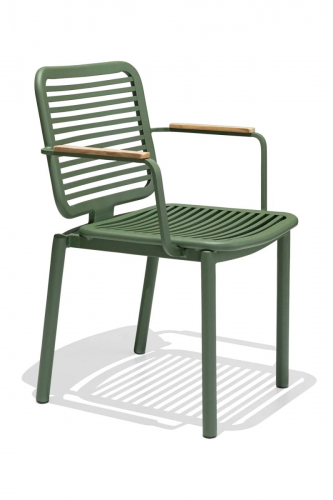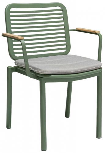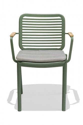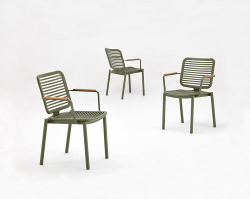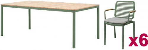 Обеденная группа Armona, рассчитанная на 6 персон, состоит из металлического стола с красивой реечной деревянной столешницей и кресел с мягкими подушками. Мебель Armona создана, чтобы выдержать испытание временем. Рама изделий изготовлена из алюминия с порошковым покрытием, что обеспечивает долговечность. Штабелируемые кресла оснащены элегантными подлокотниками из тикового дерева и съемными подушками, что делает их невосприимчивыми к различным погодным условиям.