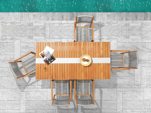 Комплект прекрасно подойдет для групповой трапезы или празднования значимых событий. Современная форма, выполненная из массива тика, в комбинации с солидной конструкцией делают мебель из коллекции Champion универсальной в использовании и всегда актуальной в плане дизайна.