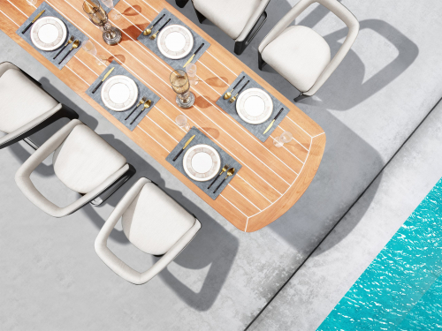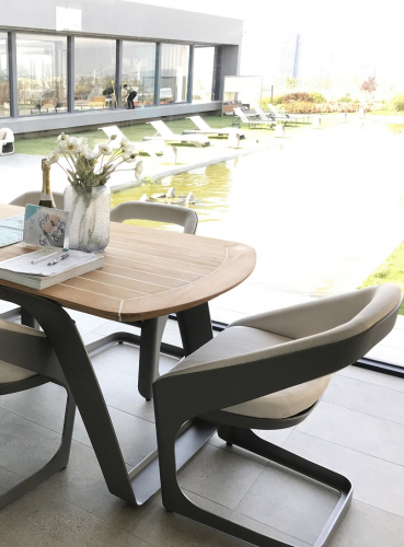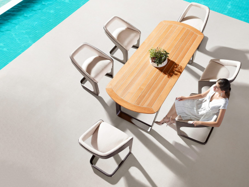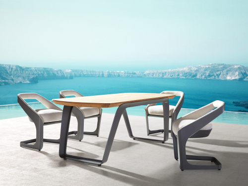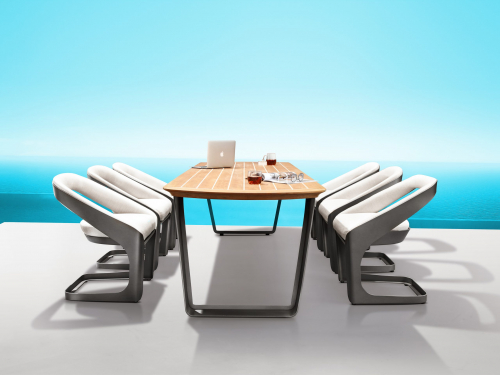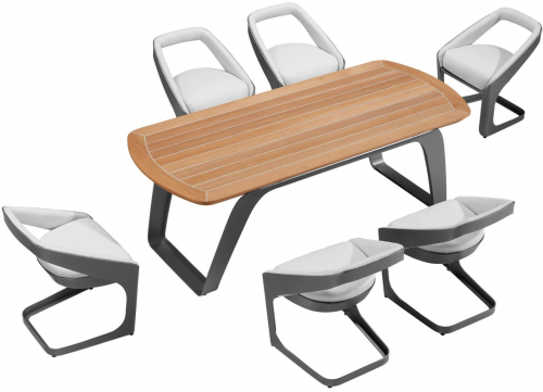Комплект обеденной мебели Onda состоит из шести эргономичных кресел и вместительного стола. Все выполнено в тонкой и минималистской форме, которая подчеркивает уникальный и футуристический характер мебели. Комплект создан для всех, кто ценит роскошь и комфорт. Мебель отличается использованием изящных, рациональных форм, которые восхищают своим эстетичным видом и функциональностью. Алюминиевая конструкция обеспечивает устойчивость к механическим повреждениям, ржавчине и неблагоприятным погодным условиям. Высококачественные материалы обивки легко чистятся и гарантируют непревзойденную долговечность. Гидрофобное покрытие обеспечивает оптимальный поток воды, позволяя не убирать мебель Onda даже во время дождя.