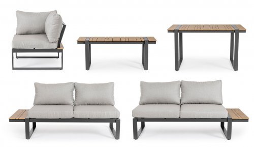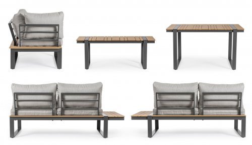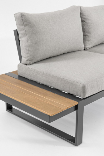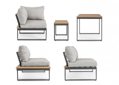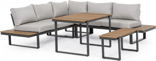 Набор состоит из обеденного стола, скамьи и трех мягких модулей.