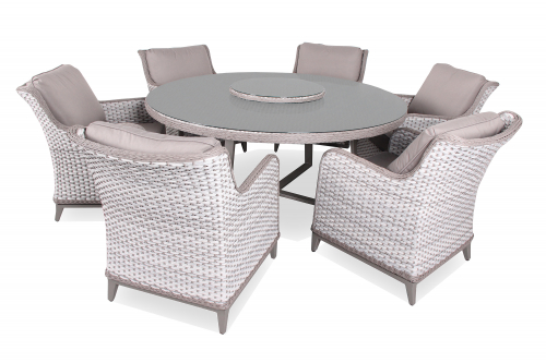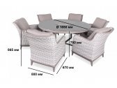 Обеденный комплект Orlando, рассчитанный на 6 человек, имеет алюминиевую конструкцию с плетением из искусственного ротанга. Он идеально подходит для того, чтобы насладиться вкусной едой под солнечным светом на заднем дворе. Характеризуется высокой устойчивостью к внешним условиям, долговечностью и длительным сроком службы.