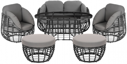 Цена на сайте указана за комплект с плетением в цвете Черный металлик и обивкой подушек из ткани Jamaica Grey. Для уточнения всех возможных вариантов материала и цвета данного изделия обращайтесь к нашим менеджерам.