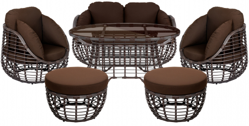 Цена на сайте указана за комплект с плетением в цвете Шоколад металлик и обивкой подушек из ткани Jamaica Brown. Для уточнения всех возможных вариантов материала и цвета данного изделия обращайтесь к нашим менеджерам.