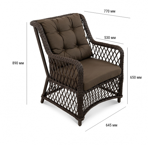 Цена на сайте указана за комплект с плетением в цвете Шоколад металлик и обивкой подушек из ткани Calista 4. Для уточнения всех возможных вариантов материала и цвета данного изделия обращайтесь к нашим менеджерам.
