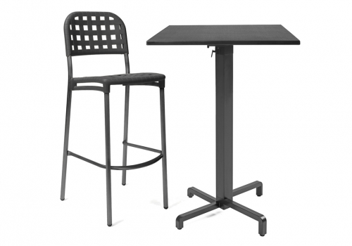 Барное подстолье Ibisco High разработано для создания столов, которые будут использоваться в барах, ресторанах и кафе. Модель привлекает внимание своими функциональными преимуществами: возможность наклона, позволяющая складывать столы в вертикальном положении и экономить место, а также регулирование высоты ножек, обеспечивающая оптимально устойчивую установку.