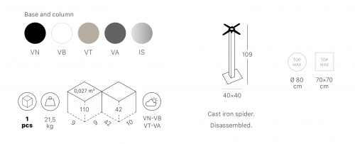 Tiffany - это элегантное и прочное подстолье для стола, предназначенное для использования в помещении и на открытом воздухе в зависимости от модели и материалов производства. Коллекция высоко ценится за свою большую стабильность и отличный дизайн, находит место в различных проектах, как частного использования, так и контрактного сектора. Подстолье Tiffany в сочетании с красивыми столешницами Scab Design представляет собой идеальную основу стола для меблировки баров, кафе или ресторанов.