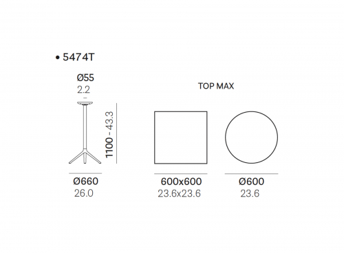 Макс. ø столешницы 600 мм