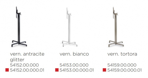 Scudo High Special – это барное подстолье, являющееся превосходным решением для обстановки открытых площадок баров, ресторанов и любых других назначений. Оно изготовлено из окрашенного алюминия со специальной обработкой, которая делает модель подходящей для использования в местах с высоким содержанием соли. Регулируемые накладки на ножках дают возможность подобрать наиболее устойчивое положение при неровных поверхностях. Возможность наклона позволяет складывать столы в вертикальное положение и экономить место. Несколько вариантов отделки делает подстолье подходящим для различных интерьеров и открытых пространств.
