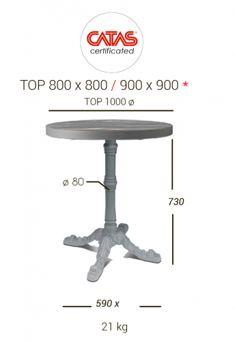 Основание в стиле Liberty полностью выполнено из окрашенного чугуна. Подстолье 101/4 состоит из основания на четырех ножках и круглой колонны, доступно в двух вариантах высоты, комбинируется со столешницами разных размеров и отделок.