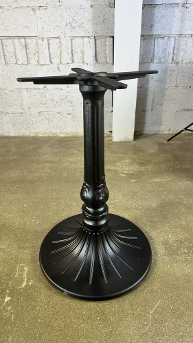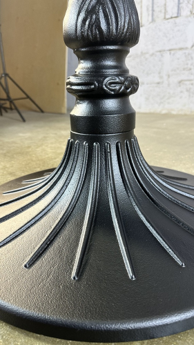 Подстолье из чугуна с порошковым напылением представляет собой массивную металлическую конструкцию с прочным декоративно-защитным слоем. Чугун отличается исключительной устойчивостью и надежностью, а порошковое покрытие обеспечивает высокую защиту от коррозии, механических повреждений и атмосферных воздействий. Данная модель идеально подходит для использования в кафе, ресторанах и общественных пространствах, как внутри помещений, так и на улице. Она гармонично сочетается со столешницами из дерева, камня, МДФ и пластика, становясь долговечным решением для создания стильной и функциональной мебели.