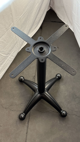 Подстолье из чугуна с порошковым напылением представляет собой массивную металлическую конструкцию с прочным декоративно-защитным слоем. Чугун отличается исключительной устойчивостью и надежностью, а порошковое покрытие обеспечивает высокую защиту от коррозии, механических повреждений и атмосферных воздействий. Данная модель идеально подходит для использования в кафе, ресторанах и общественных пространствах, как внутри помещений, так и на улице. Она гармонично сочетается со столешницами из дерева, камня, МДФ и пластика, становясь долговечным решением для создания стильной и функциональной мебели.