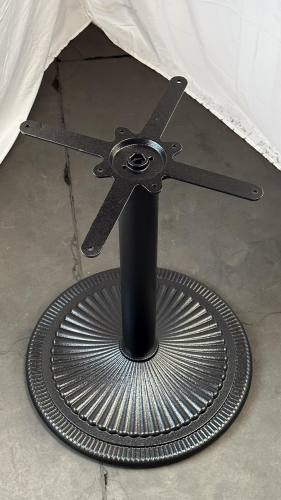 Подстолье из чугуна с порошковым напылением представляет собой массивную металлическую конструкцию с прочным декоративно-защитным слоем. Чугун отличается исключительной устойчивостью и надежностью, а порошковое покрытие обеспечивает высокую защиту от коррозии, механических повреждений и атмосферных воздействий. Данная модель идеально подходит для использования в кафе, ресторанах и общественных пространствах, как внутри помещений, так и на улице. Она гармонично сочетается со столешницами из дерева, камня, МДФ и пластика, становясь долговечным решением для создания стильной и функциональной мебели.