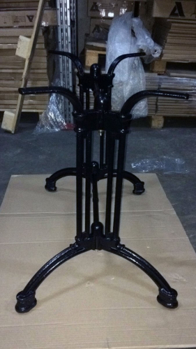 Подстолье чугунное. Труба и основание - чугунное литье. Чугунные подстолья часто выбирают для кафе на открытом воздухе, закусочных и кафетериев. Можно сказать, что они имеют повышенную прочность и устойчивость ко всем возможным влияниям. Модели, выполненные из чугуна, не потрескаются, на них не будет царапин. Конечно же, главным свойством таких опор можно назвать их устойчивость. А это позволяет использовать чугунные подстолья в сочетании с массивными столешницами. Кроме этого из чугуна могут быть изготовлены подстолья довольно изящной формы, что позволит придать любому заведению свой неповторимый облик.