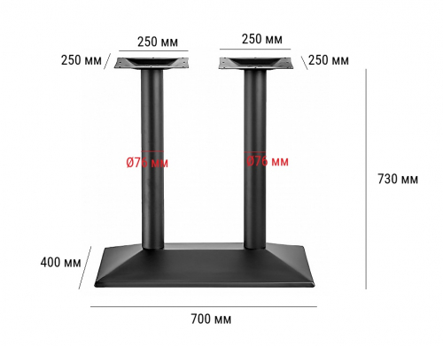Подстолье металлическое. Труба и основание - черное порошковое покрытие. Основание пирамидальное.