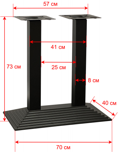 Подстолье из металла с порошковым покрытием представляет собой прочную металлическую конструкцию с равномерным покрытием. Порошковая краска обеспечивает превосходную защиту от коррозии, устойчива к механическим повреждениям, ультрафиолету и атмосферным воздействиям, что делает данную модель идеальным решением для использования в уличных условиях. Подстолье отлично подходит для оснащения летних веранд кафе и ресторанов, а также гармонично сочетается со столешницами из МДФ, ДСП, пластика и других материалов, становясь надежным и долговечным решением для создания функциональной мебели.