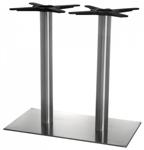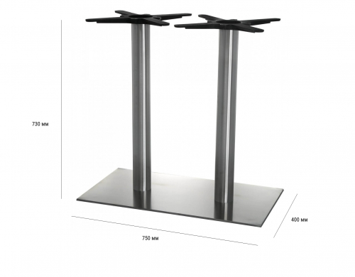 Подстолье двойное металлическое. Труба и основание: нержавеющая сталь матовая. Опоры для столов, выполненные из нержавеющей стали, имеют определенные преимущества. Кроме привлекательного внешнего вида стоит отметить высокую износостойкость и долговечность.