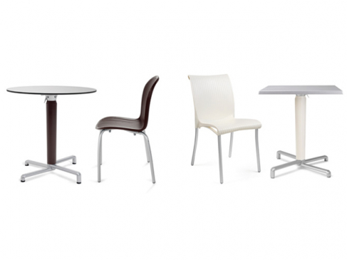 База имеет возможность наклона, что позволят складывать столы в вертикальном положении и экономить место.