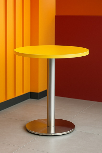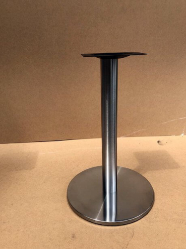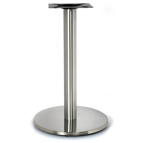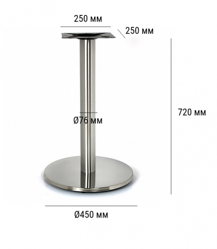 Подстолье из полированной нержавеющей стали (матовое). В основании - пластик, декорированный нержавеющей сталью. Допустимый вес столешницы: до 10 кг.