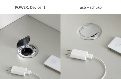 Подстолье Power с круглым основанием и круглой колонной из стали. Название Power (мощность, энергия) отражает функциональность модели. Можно подключить устрйство для зарядки USB + SCHUKO, чтобы быть всегда на связи. Подстолья идеально подходят для офисов и заведений.