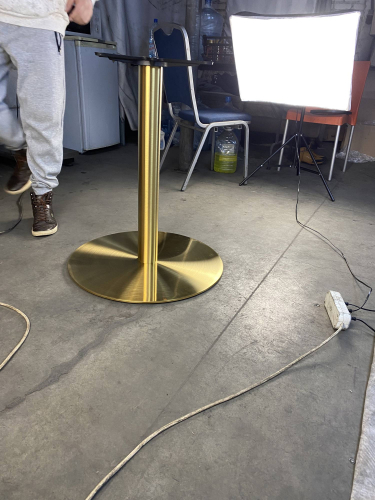 Подстолье из полированной нержавеющей стали (матовое) золотого цвета (нитрид титана). Лаковое покрытие.