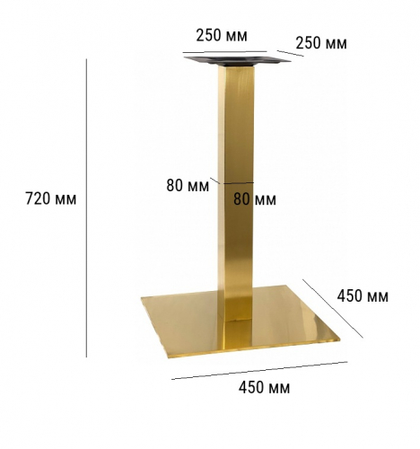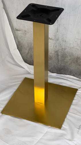 Подстолье из полированной нержавеющей стали (матовое). Цвет: золото (нитрид титана). Лаковое покрытие. Основание плоское.