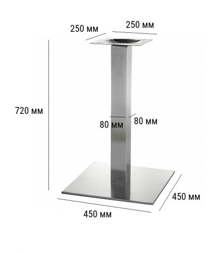 Подстолье из полированной нержавеющей стали (матовое). Основание плоское.