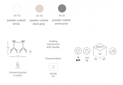 Подстолье Nemo Double со складным механизмом для прямоугольной столешницы от дизайнера Roberto Semprini.