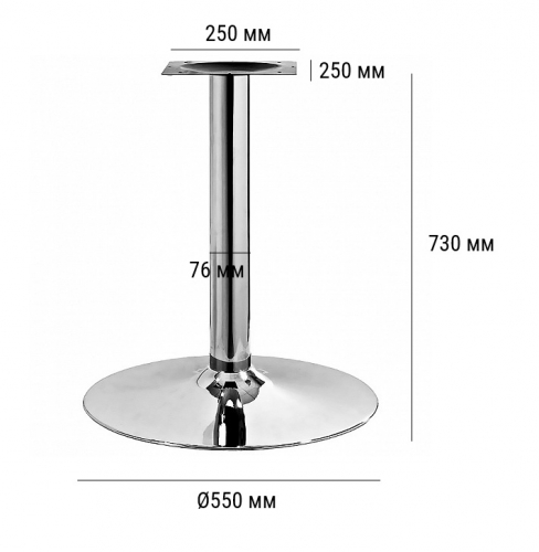 Основание "рюмочкой". Хромированное подстолье представляет собой металлическую конструкцию с эффектным покрытием. Хром отличается высокой износостойкостью, не подвержен коррозии и устойчив к температурным перепадам, что гарантирует длительный срок эксплуатации. Данная модель отлично сочетается со столешницами из МДФ, ДСП и пластика, становясь практичным решением для создания современной мебели.