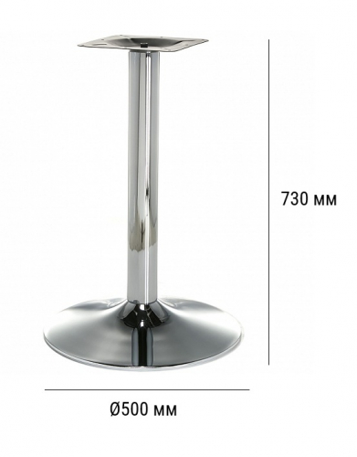 Основание "рюмочкой". Хромированное подстолье представляет собой металлическую конструкцию с эффектным покрытием. Хром отличается высокой износостойкостью, не подвержен коррозии и устойчив к температурным перепадам, что гарантирует длительный срок эксплуатации. Данная модель отлично сочетается со столешницами из МДФ, ДСП и пластика, становясь практичным решением для создания современной мебели.
