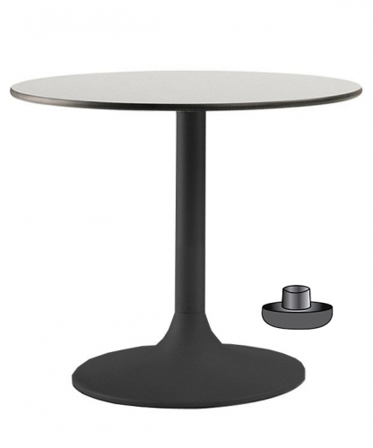 Подстолье Dream из окрашенной, хромированной, сатинированной нержавеющей стали или с отделкой для использования на улице с колонной Ø60 мм, которая гармонично соединяется с чугунным основанием Ø460.
