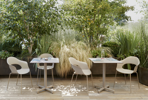 Подстолье Cross с крестообразным основанием и полимерным покрытием идеально подходит для квадратной или круглой столешницы.