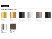 Варианты отделки: сатинированная сталь (IS), кортен (KE), сатинированная латунь (OS), матовое золото (OM), порошковое покрытие - черный (VN), белый (VB), тортора (VT), антрацит (VA).