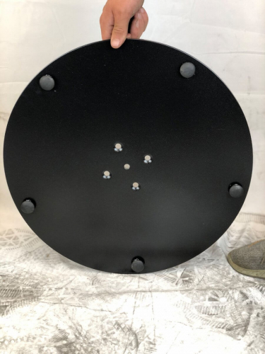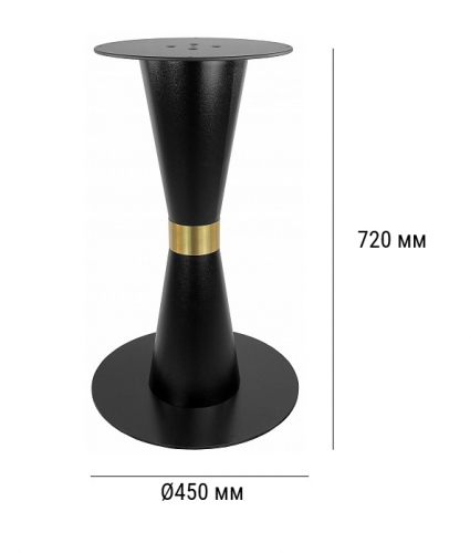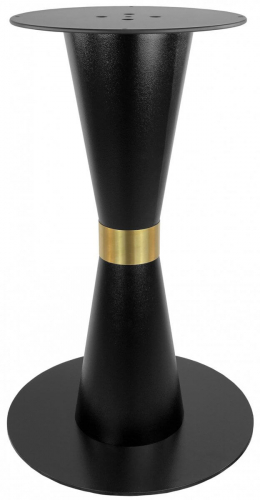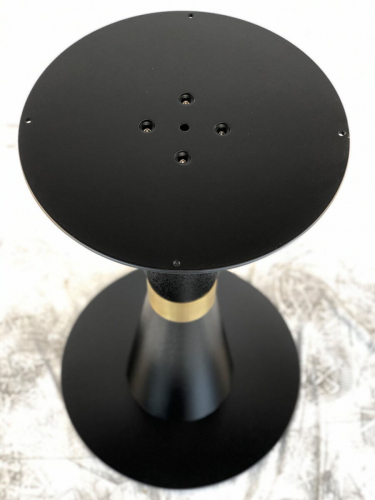 Подстолье металлическое. Труба и основание - черное порошковое покрытие матовое. Золотая вставка с матовой нержавейкой. Основание плоское.