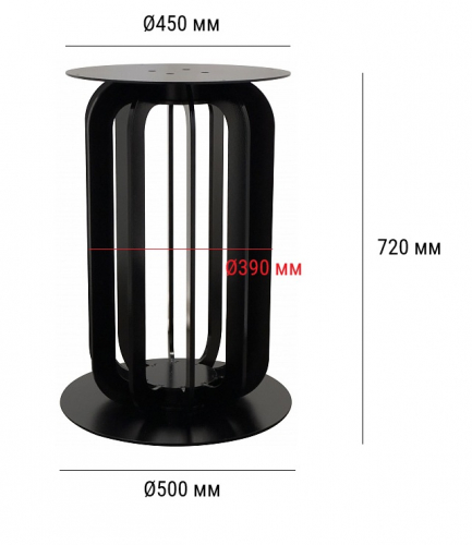 Подстолье металлическое. Труба и основание - черное матовое порошковое покрытие. Основание плоское.