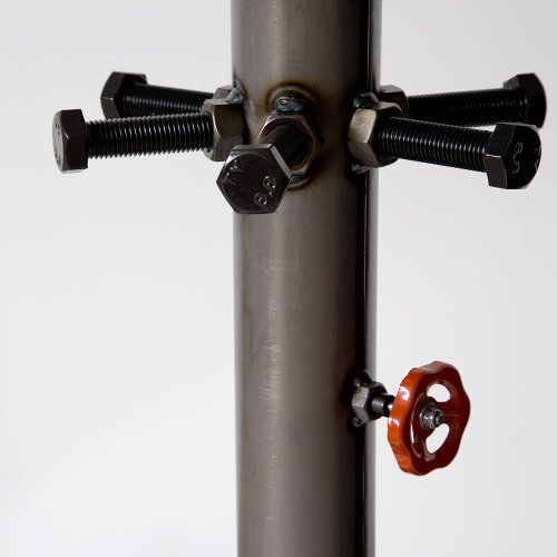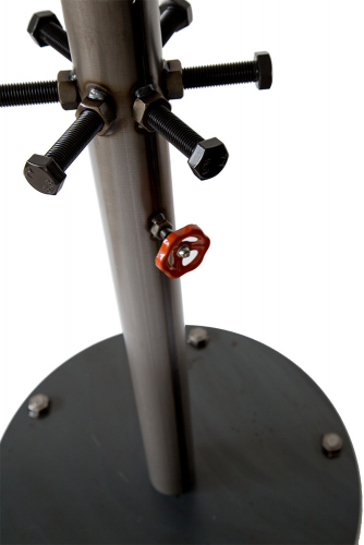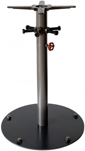 Подстолье Hydro с круглым основанием из окрашенного железа с пятью болтами и сварной железной трубой с шестью вешалками для сумок и декоративным вентилем. Подстолье в индустриальном стиле станет прекрасным элементом для меблировки кафе, баров и ресторанов и отелей.