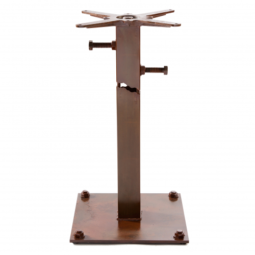 Подстолье Frankie с квадратным основанием из окрашенного железа с 4 болтами и сварной железной трубой с двумя вешалками для сумок. Подстолье в индустриальном стиле станет прекрасным элементом для меблировки кафе, баров и ресторанов и отелей.