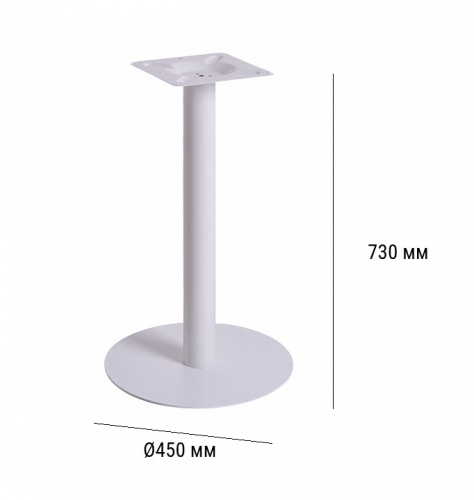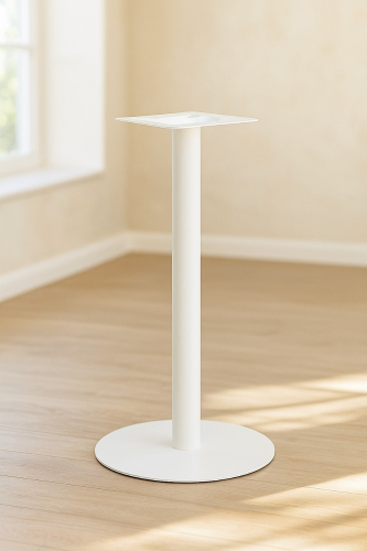 Подстолье металлическое. Труба и основание - белое порошковое покрытие. Основание плоское.