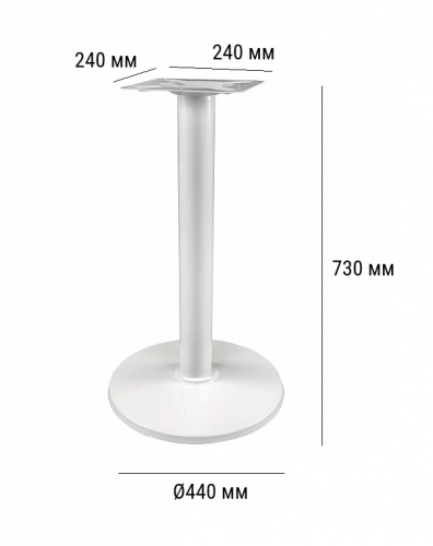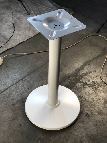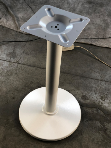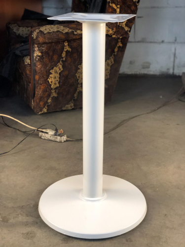 Подстолье металлическое. Труба и основание - белое порошковое покрытие. Основание конусообразное.