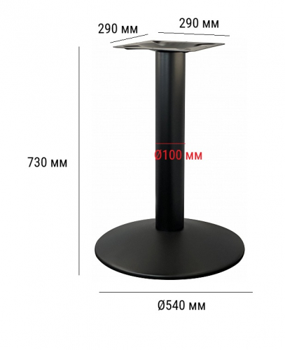 Подстолье металлическое. Труба и основание - черное порошковое покрытие. Основание сферическое.