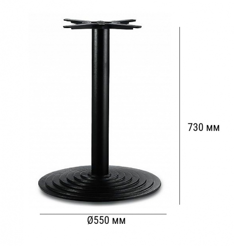 Подстолье металлическое. Труба и основание - черное порошковое покрытие. Основание рефленое конусообразное.