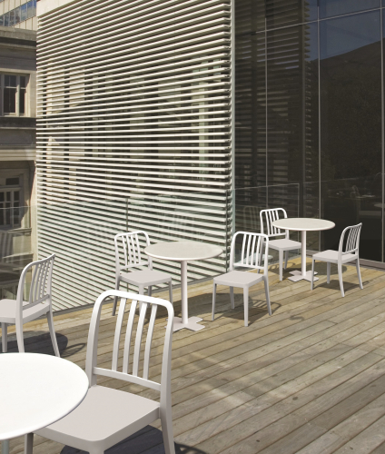 Подстолье Oxo I имеет основание в форме буквы X и одновременно изготовлено в простом и экстравагантном стиле. Его можно использовать как в помещении, так и на летних площадках кафе, баров и ресторанов. Благодаря катафорезу металлического каркаса увеличивается сопротивляемость против царапин и коррозии.