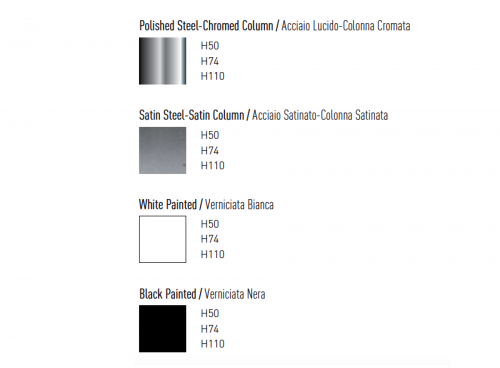 Цена на сайте указана за модель из полированной стали с хромированной колонной высотой 740 мм. Цены на другие модели Вы можете уточнить у менеджеров.