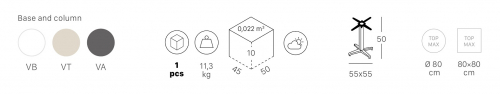 Подстолье Cross с крестообразным основанием и полимерным покрытием идеально подходит для квадратной или круглой столешницы.