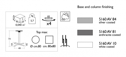 Подстолье Domino со складным механизмом идеально подходит для квадратной или круглой столешницы.