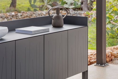 Комфорт, эстетика и функциональность – это три грани краеугольного камня, которые необходимо учитывать при создании уголка на открытом пространстве, поскольку мебель должна быть привлекательной, но также подходящей для различных погодных условий. Ninfea – это новая линейка комодов для хранения вещей и принадлежностей на улице. Модель доступна в гамме ярких цветов с устойчивым к царапинам верхним покрытием. Помимо хранения вещей, его можно использовать как разделитель пространства. Гравированный узор на дверцах напоминает ту же флористическую тематику, что и на других изделиях фабрики Fast. Такой выбор сделан из соображений эстетической согласованности, что делает Ninfea совместимой со всеми другими коллекциями, создавая отличительный, но в то же время гармоничный эффект. Бортик обеспечивает дополнительную безопасность и предотвращает падение вещей с поверхности комода.